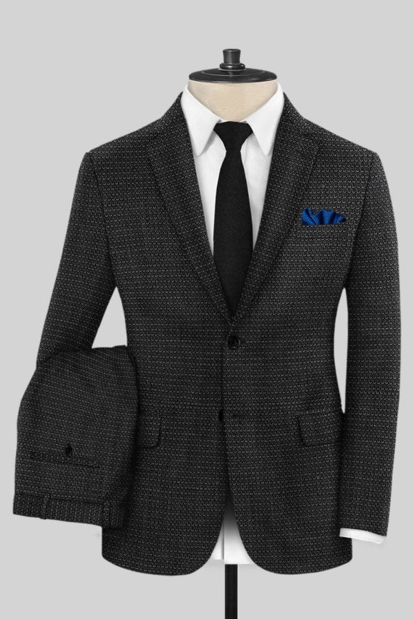 Fancy Dark Gray Plaid Notched Lapel Business Suits