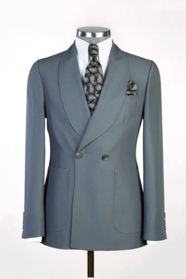 Fancy Gray Double Breasted Shawl Lapel Wool Wedding Suits