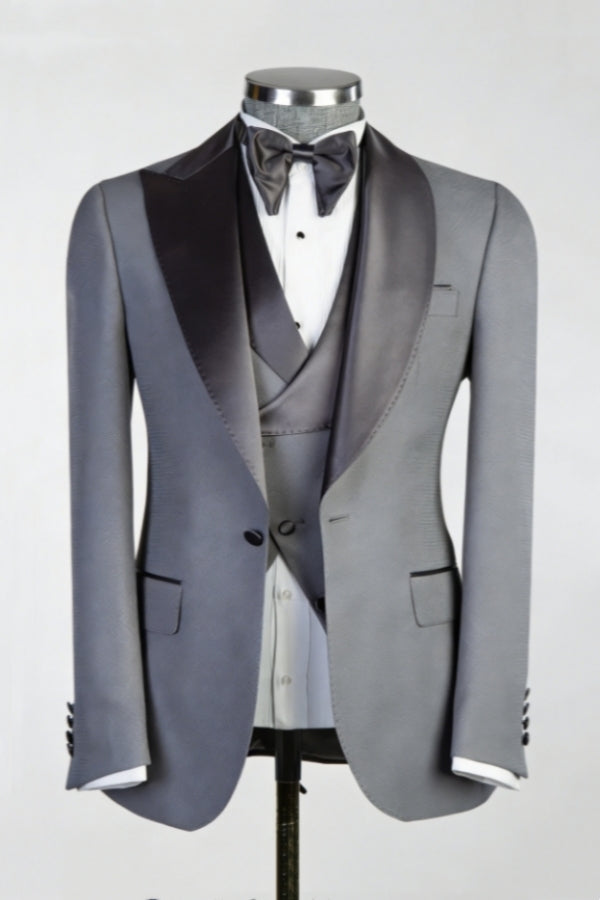 Trendy Gray 3 Pieces Shawl Lapel Wool Wedding Suits