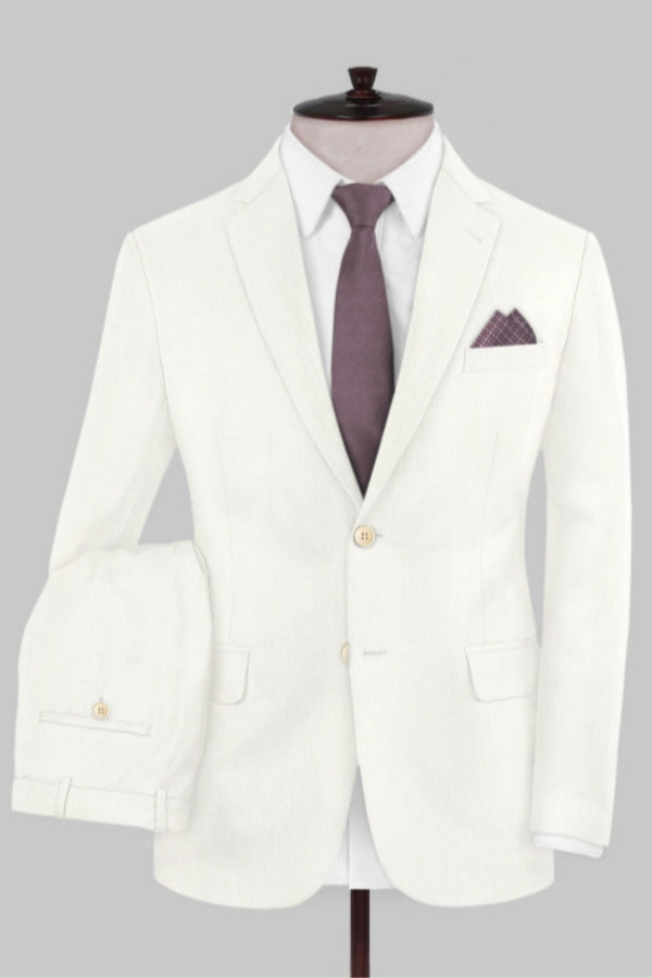 Classical Ivory Notched Lapel Wool Business Men Suits