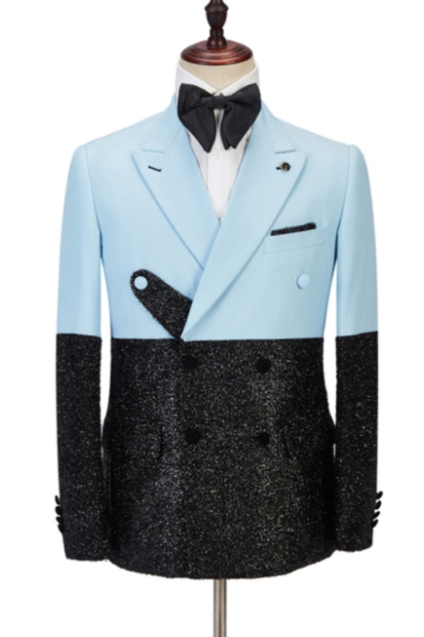 Chic Sky Blue Peaked Lapel Sparkle Black Prom Men Suits