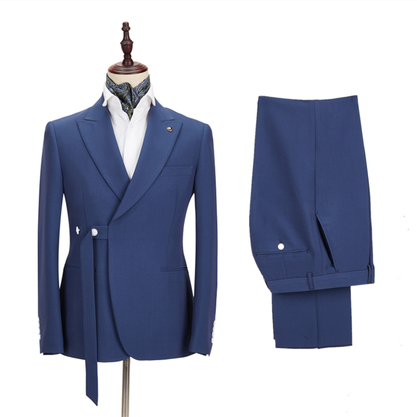 Cool Dark Blue Peaked Lapel Wool Prom Men Suits