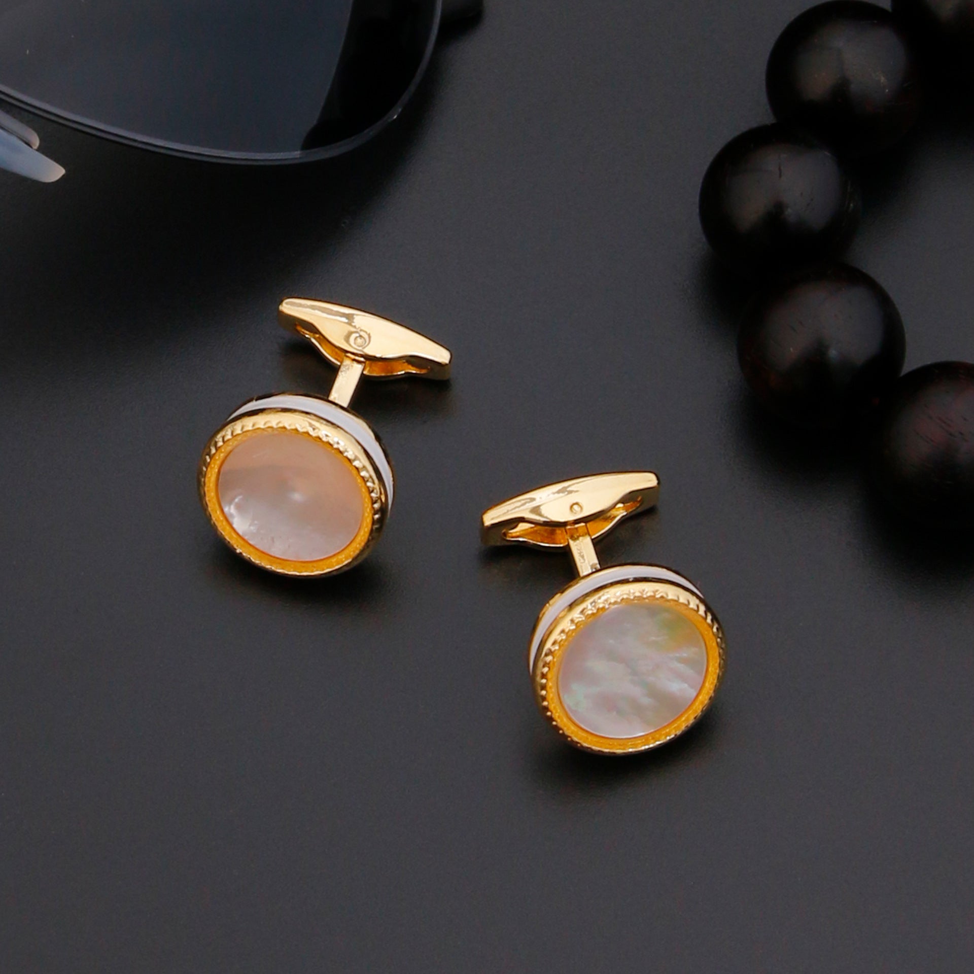 Elegant Round Golden Shell Cufflinks