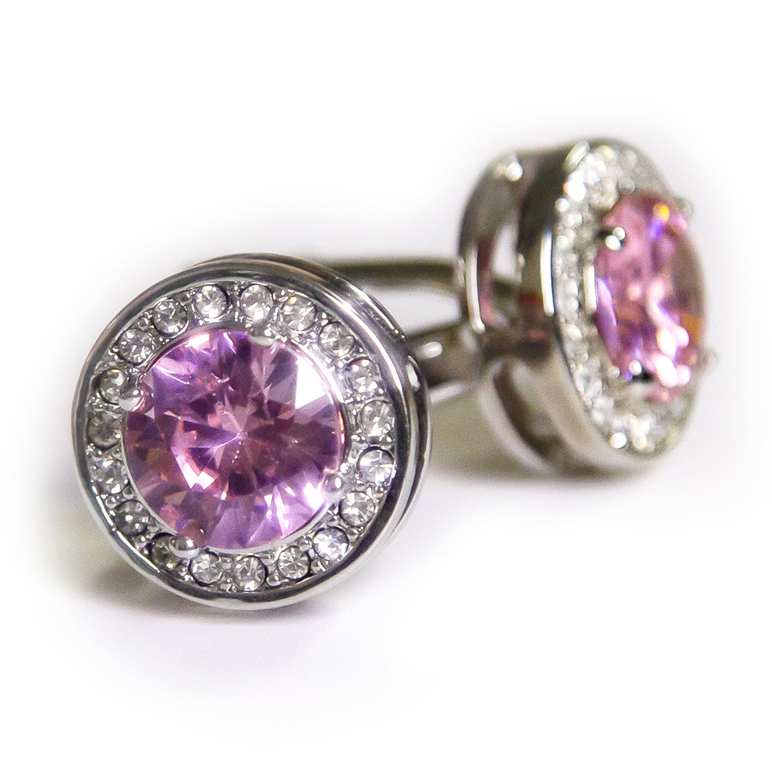 Elegant Silver Frame Pink Stone Cufflinks