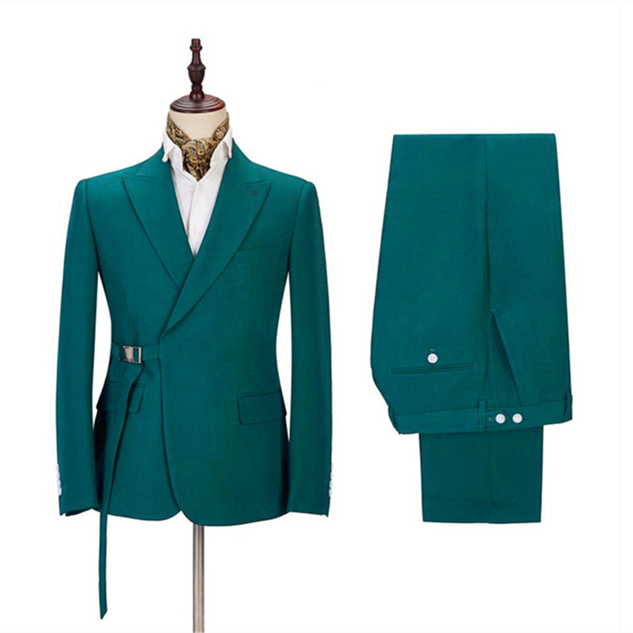 Fashion Teal Green Wool Men Suits With Adjust Belt