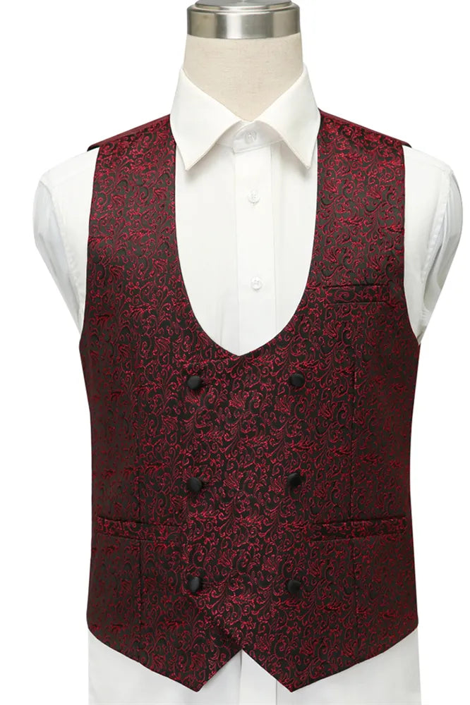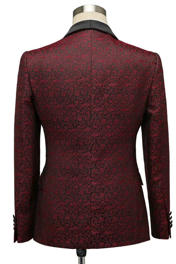 Glamorous Burgundy Jacquard 3 Pieces Shawl Lapel Wedding Suits
