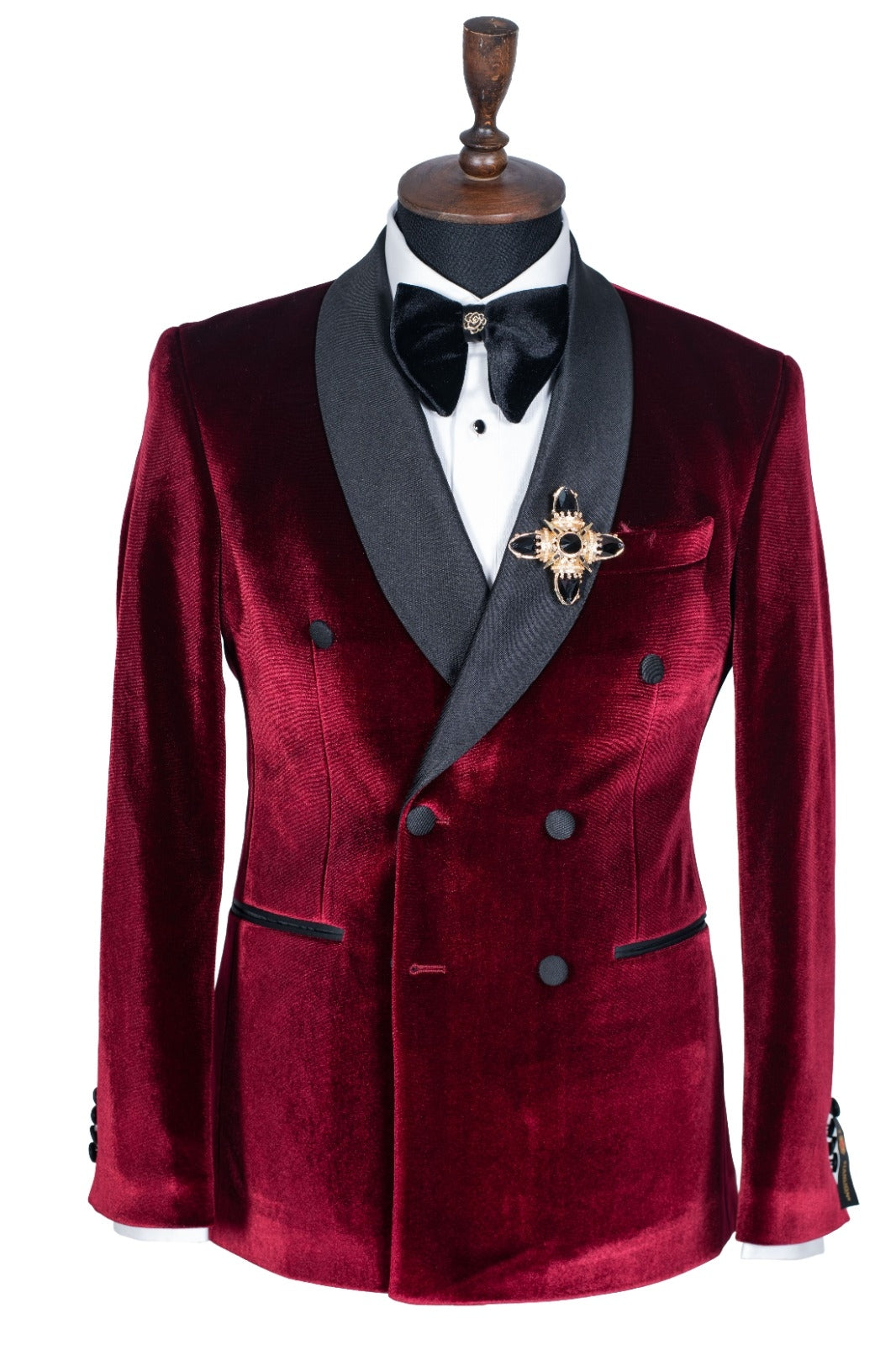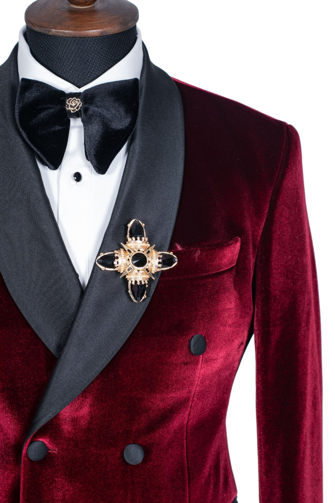 Glamorous Burgundy Velvet Double Breasted Shawl Lapel Wedding Suits