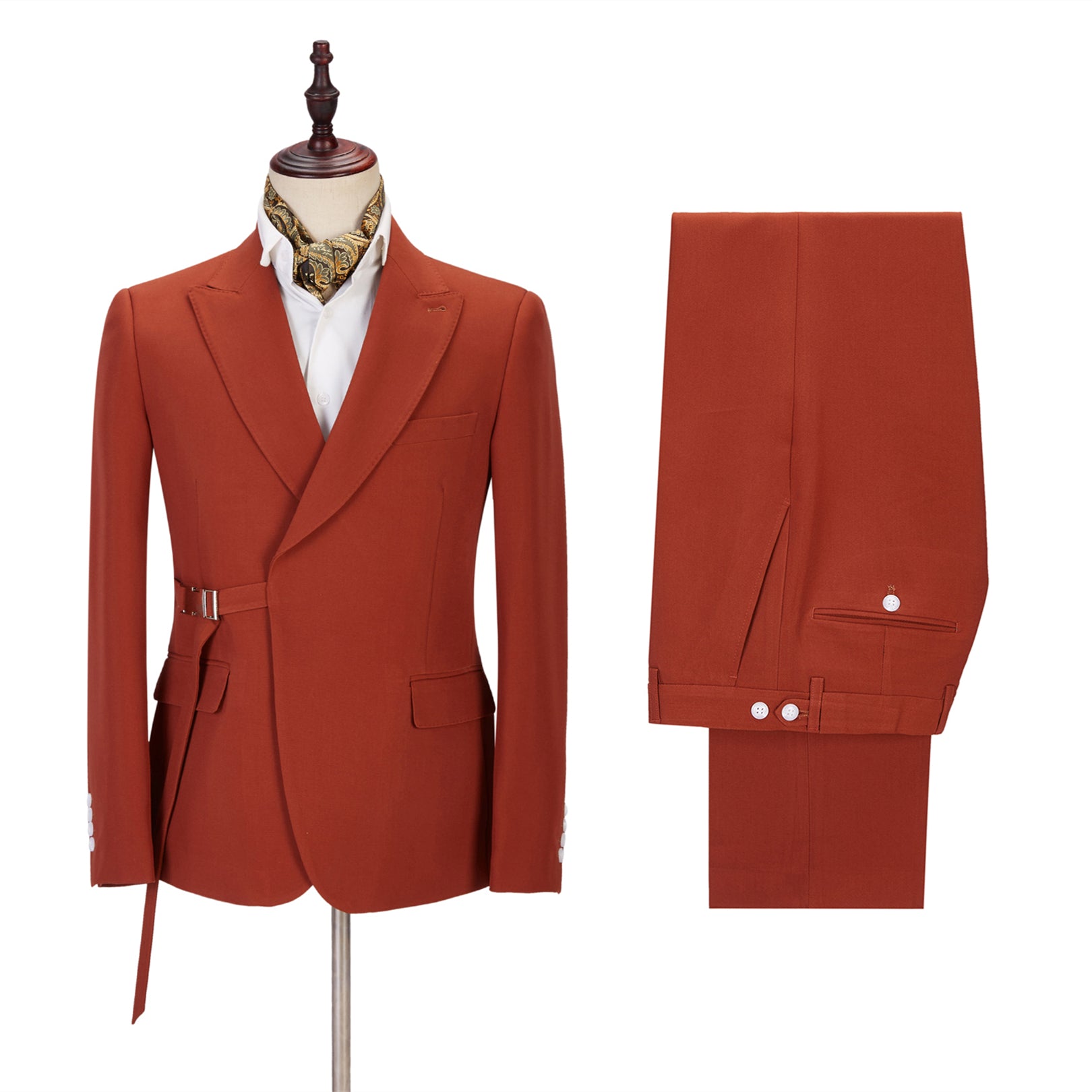 Glamorous Terracotta Peaked Lapel Wool Prom Men Suits