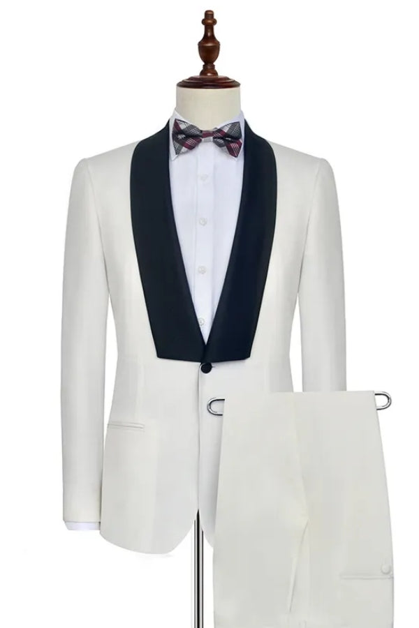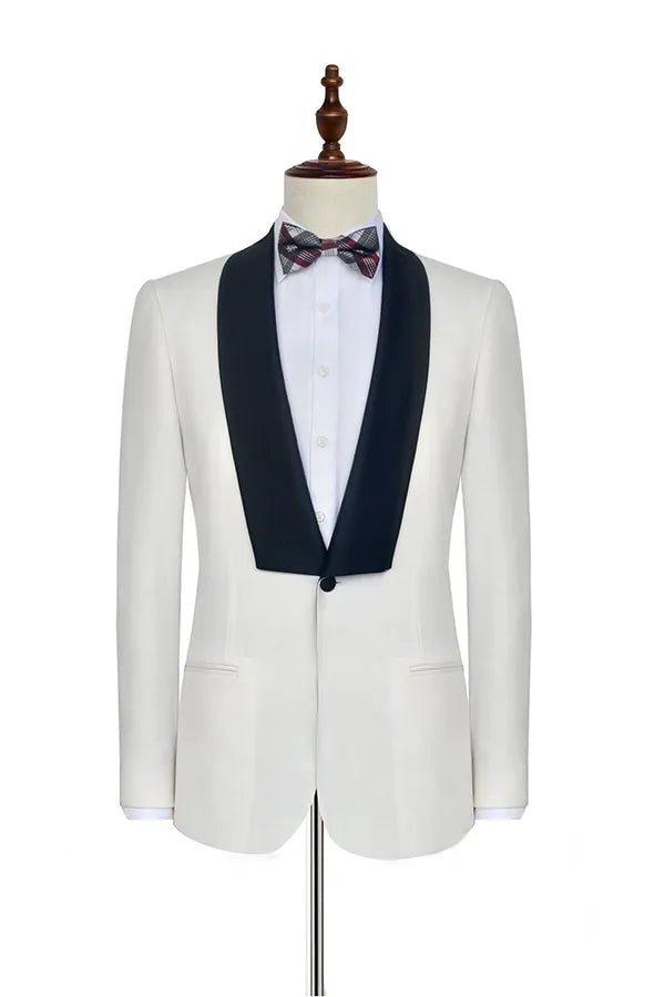 Modern White Shawl Lapel Close Fitting Wool Wedding Suits