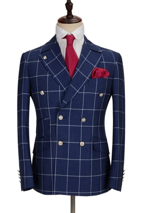 Newest Modern Dark Blue Peaked Lapel Business Suits