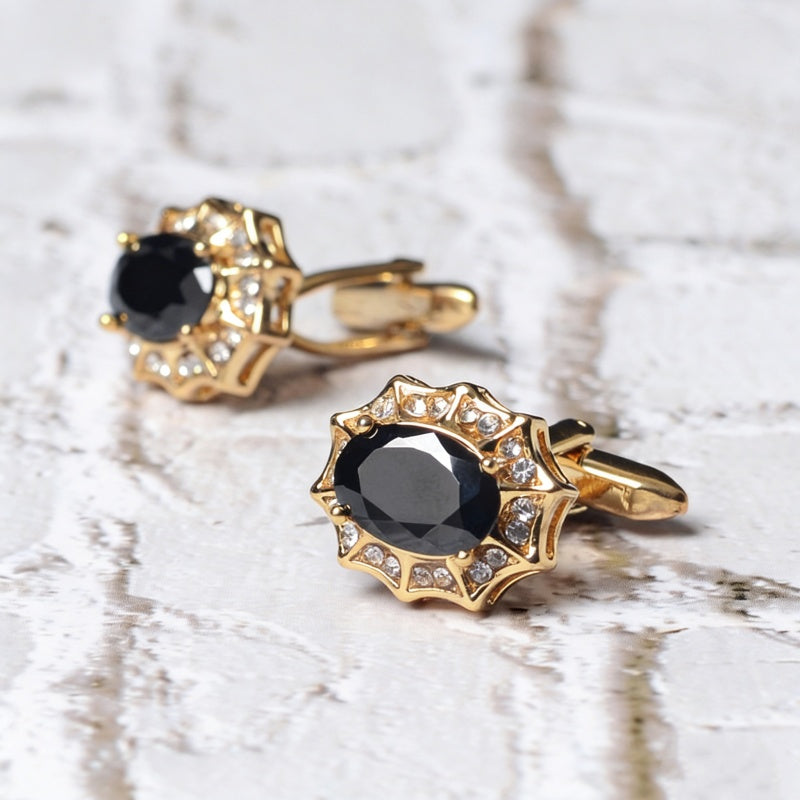 Ornate Gold Black Gemstone Cufflinks