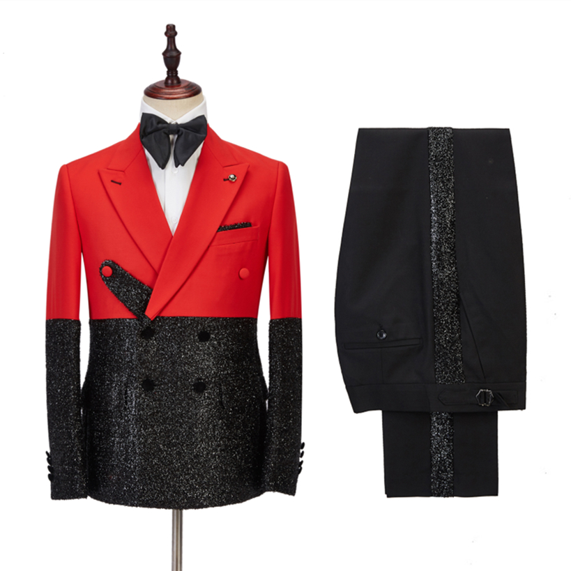 Red Peaked Lapel Sparkle Black Prom Men Suits