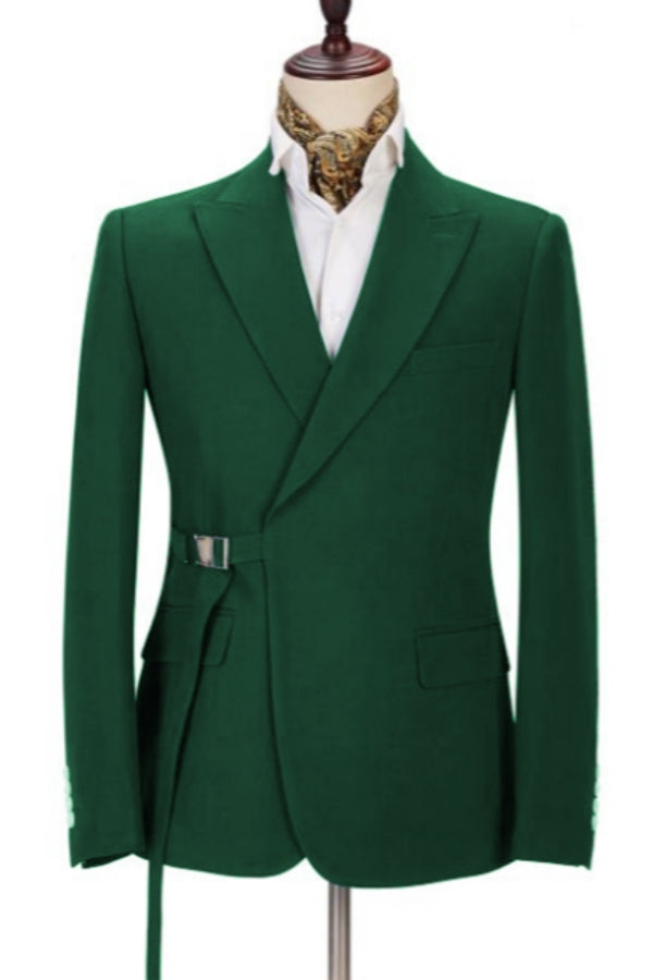 Slim Fit Green Peaked Lapel Wool Adjust Belt Prom Men Suits