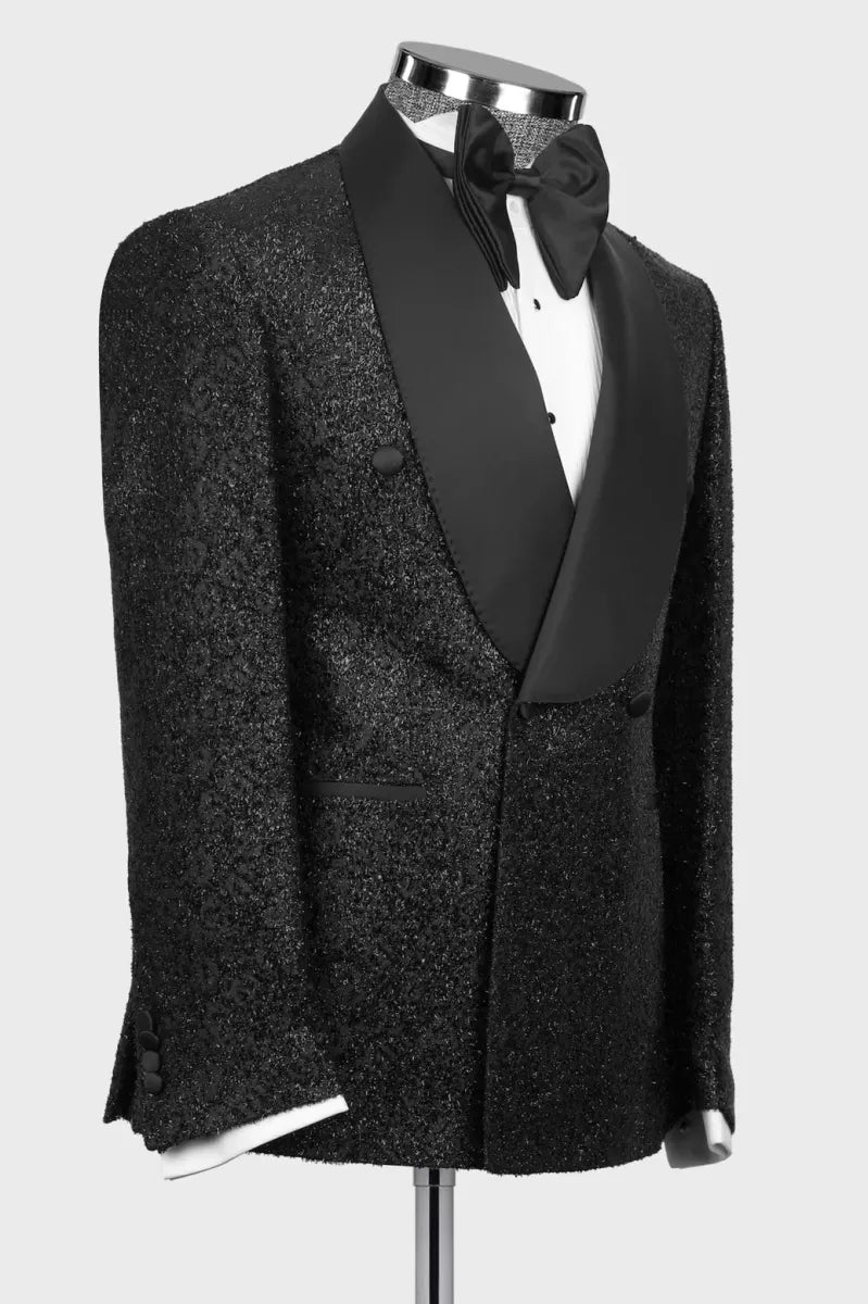 Sparkle Black Double Breasted Shawl Lapel Beadings Wedding Suits