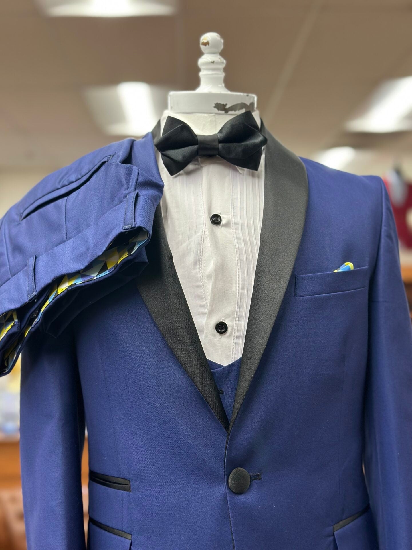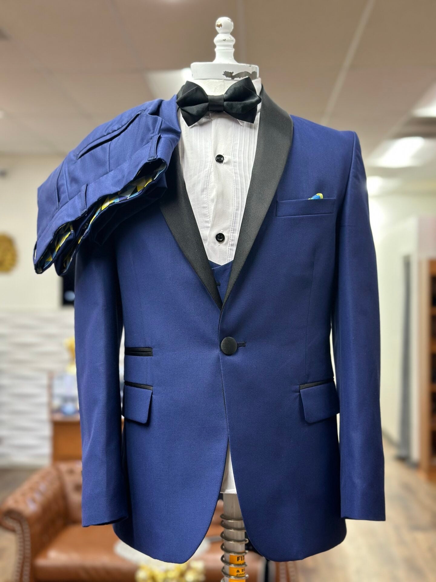 Stylish Navy Blue Shawl Lapel Wool Wedding Suits With Waistcoat