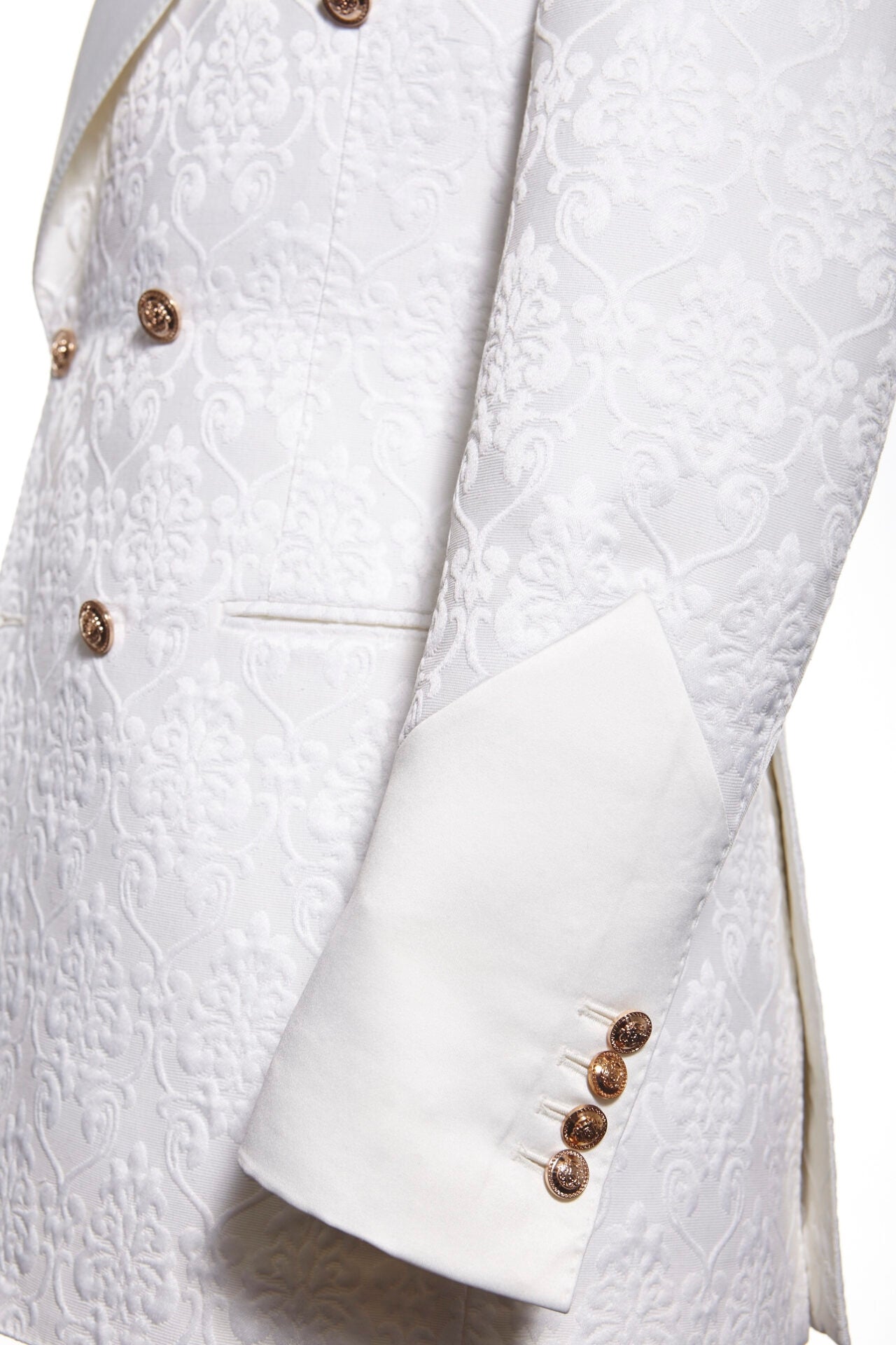 Trendy White Jacquard Double Breasted Shawl Lapel Wedding Suits