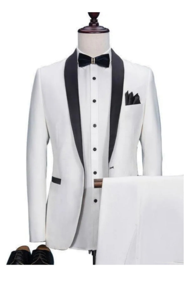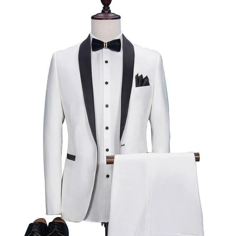 Trendy White Shawl Lapel Wool Slim Fit Wedding Suits