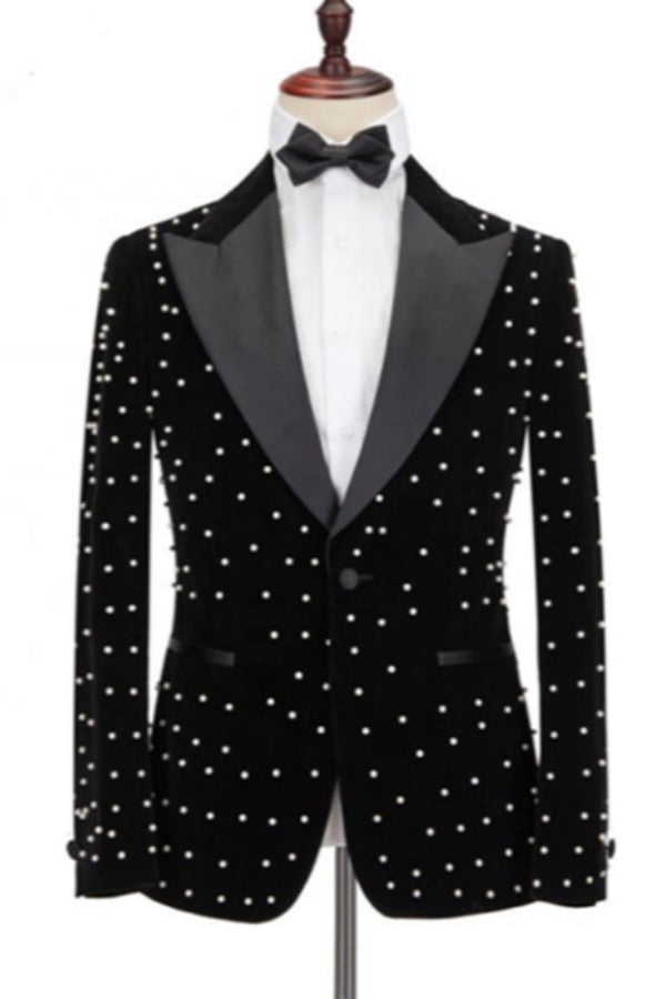 Unique Black Beadings Peaked Lapel Prom Men Suits