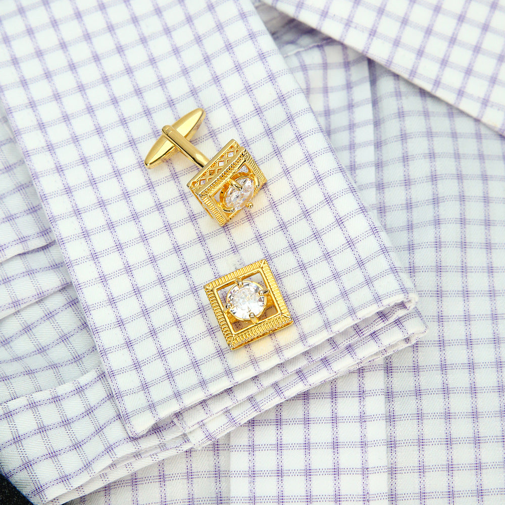 Vintage Gold Frame Clear Crystal Cufflinks